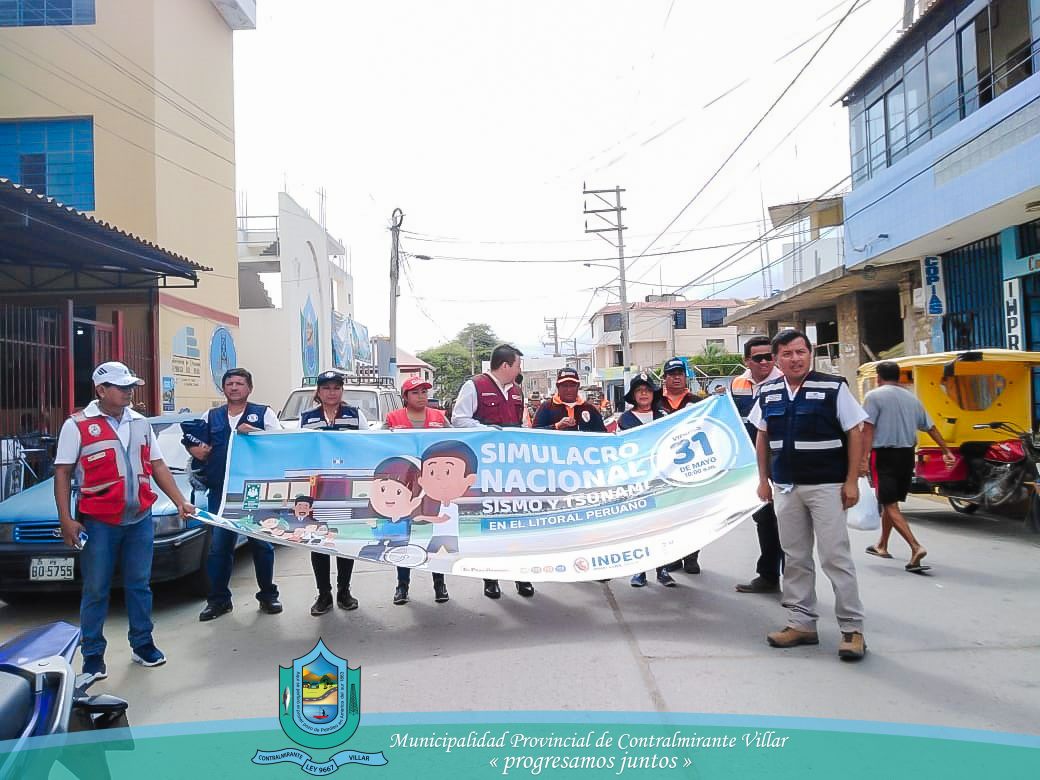 La Municipalidad Provincial de Contralmirante Villar, a través de la Subgerencia de Gestión del Riesgo de Desastres, realizo la marcha de sensibilización para que la población participe del simulacro de sismo seguido de tsunami, que se realizará el día viernes 31 de mayo, a horas 10:00 am, esta marcha inicio en el parque Miguel Grau, recorriendo las principales calles de nuestra provincia.
